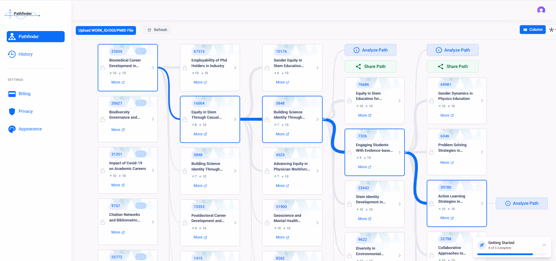 Pathfinder visualizes how your research connects across disciplines and generates polished, evidence-driven narratives. Ready for grant applications, funder reports, and stakeholder presentations.